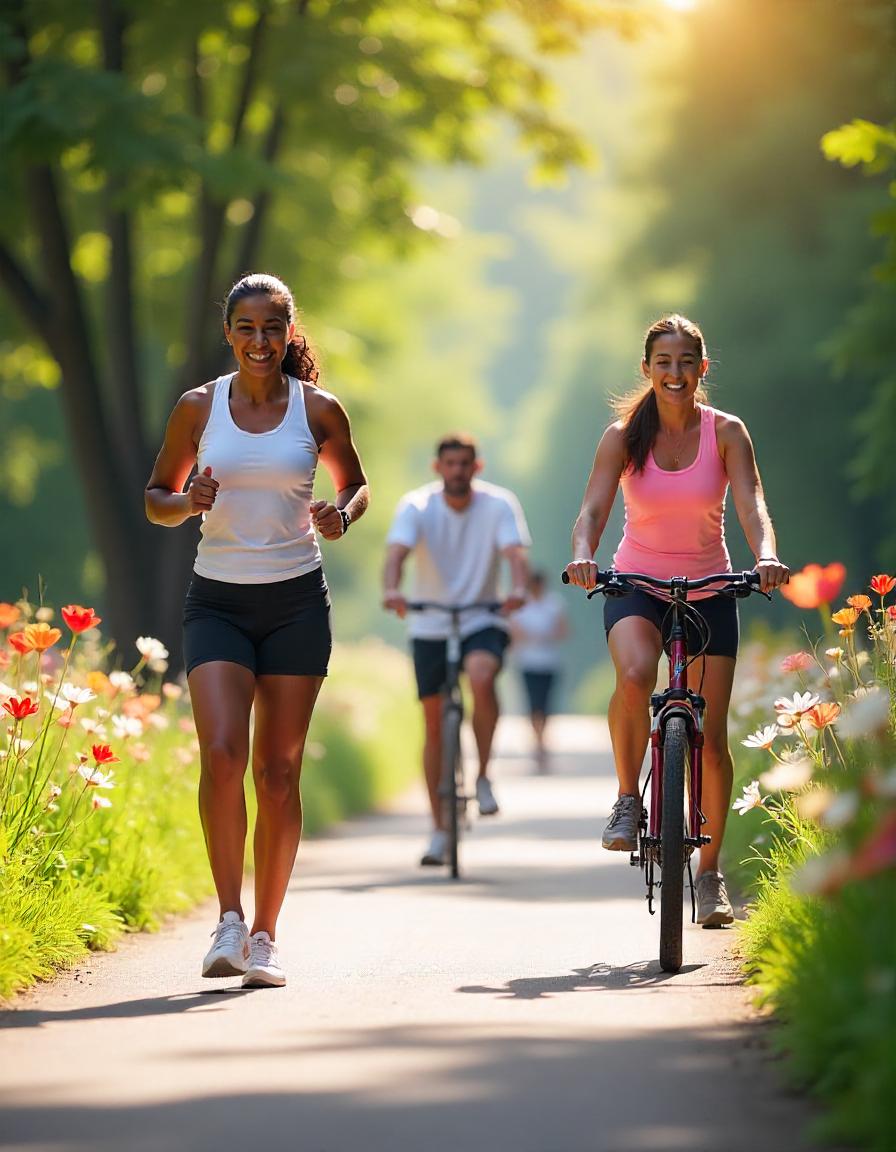 Vibrant . Mornings: Jogging and Cycling Through Nature's Blooming Path